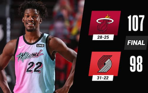 PORTLAND TRAIL BLAZERS-MIAMI HEAT 98-107 | Vittoria larga e fondamentale nel processo di crescita stagionale degli Heat, sempre più quarta forza a Est grazie alla resa di Bam Adebayo (22 punti) e Jimmy Butler (20 punti) che trascinano anche nella complicata trasferta di Portland. Per Miami è la sesta vittoria nelle ultime sette gare, con 20 lunghezze di margine nell’ultima frazione che permettono alla squadra della Florida di chiudere i conti con un quarto d’ora d’anticipo e di salire a ridosso del 4° posto della Eastern Conference