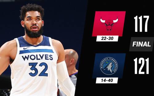 MINNESOTA TIMBERWOLVES-CHICAGO BULLS 121-117 | Segnano 27 punti a testa i due amici ex All-Star dei T’Wolves nel successo sofferto casalingo contro i Bulls: merito di Karl-Anthony Towns, che aggiunge 12 rimbalzi in una serata speciale per lui in cui la squadra di Minneapolis dedica un posto sugli spalti a Jacqueline (sua madre, scomparsa un anno fa a causa del COVID-19); merito di D’Angelo Russell, richiamato sul parquet nei minuti finale e decisivi: 7 punti a referto negli ultimi 4 minuti scarsi di gioco e gara chiusa