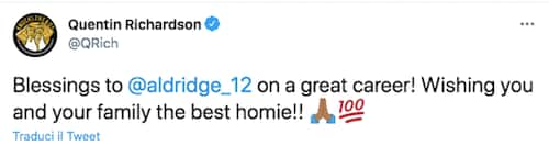 QUENTIN RICHARDSON | Una delle tante voci di giocatori ritirati già da qualche anno, ma che come Aldridge hanno fatto la storia della lega qualche tempo fa: "Auguro il meglio a te e alla tua famiglia"