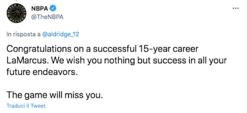 LA NBPA | A commento della lettera pubblicata da Aldridge, sono arrivate anche le parole del sindacato dei giocatori: "Ti auguriamo di avere successo in tutto ciò che farai nella tua vita"