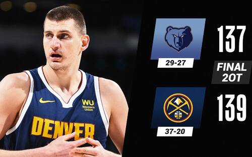 DENVER NUGGETS-MEMPHIS GRIZZLIES 139-137 OT | Una delle partite più divertenti e combattuta dell’intera stagione NBA, vinta dai Nuggets dopo due tempi supplementari in cui è successo di tutto - con Ja Morant che ha rischiato di concludere la giocata della vita, con una schiacciata che avrebbe permesso a Memphis di vincere in maniera spettacolare dopo un overtime e con Will Barton che invece ha portato a 58 il totale complessivo dei minuti giocata. Alla stoccata finale in casa Denver ha poi pensato invece, neanche a dirlo, Nikola Jokic