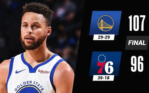PHILADELPHIA 76ERS-GOLDEN STATE WARRIORS 96-107 | Trovare aggettivi per descrivere il momento di forma e lo stato mentale e fisico di Steph Curry diventa sempre più complicato, oltre che riduttivo di fronte a prestazioni che permettono agli Warriors di battere a domicilio anche una delle grandi favorite a Est - travolta dal 52-41 di parziale che spezza l’equilibrio del primo tempo e caduta sotto l’ennesima prestazione (21^ in carriera, sesta solo in questa regular season) da 10 triple di Curry, letale dall’arco e per 11 volte in fila oltre quota 30 punti segnati
