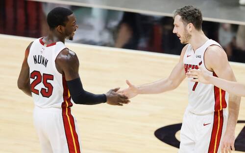 Il volto della vittoria di Miami è Kendrick Nunn che chiude con il nuovo massimo in stagione da 30 punti, 7 rimbalzi e 8 assist a referto, condito con un ottimo 12/20 al tiro e un letale 6/12 dall’arco. Di bersagli dalla lunga distanza ne arrivano anche cinque da parte di Duncan Robinson, il primo giocatore nella storia degli Heat a superare le 200 triple segnate in più stagioni consecutive e il 21° nella storia NBA a farcela