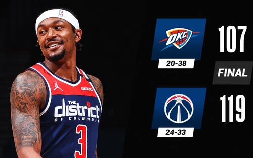 Discorso a parte invece va fatto per Russell Westbrook, che mette a referto la sua 26^ tripla doppia stagione - a rischio a causa della pessima mira in una serata con nove conclusioni sbagliate in fila nel secondo tempo, prima di trovare la tripla che riporta sul +9 Washington a 4 minuti dal termine. La seconda tripla doppia in carriera contro OKC gli permette di essere l’unico giocatore all-time con una doppia tripla doppia contro tutte le 30 franchigie NBA: sono 172 in totale, soltanto 9 di distanza da Oscar Robertson
