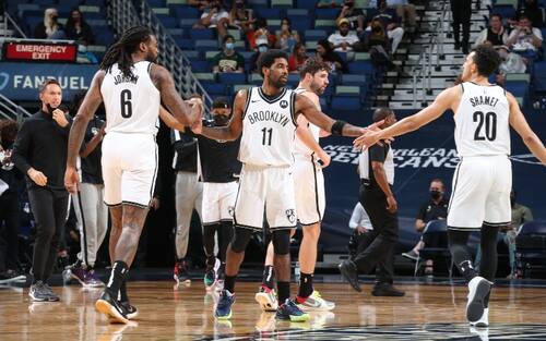 Senza Kevin Durant alle prese con il fastidio alla coscia e con James Harden nel pieno di una ricaduta che potrebbe costringerlo a tornare sul parquet direttamente a ridosso dei playoff, i Nets si godono un Kyrie Irving da 32 punti e 8 assist con 12/19 dal campo, 3/7 dall’arco e una palla rubata che si aggiunge alla deviazione cruciale sull’ultimo possesso - che a meno di 5 secondi dalla sirena costringe New Orleans a non tirare, a perdere il pallone e il quarto match consecutivo in un pessimo finale di stagione