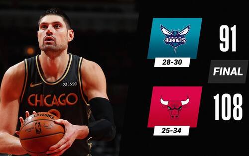 CHICAGO BULLS-CHARLOTTE HORNETS 108-91 | Terza vittoria nelle ultime 4 per i Bulls, che hanno ben tre giocatori a quota 18: Nikola Vucevic ci aggiunge anche 16 rimbalzi (suo massimo stagionale eguagliato), poi ci sono anche Coby White e Thaddeus Young, in una serata in cui devono fare a meno per la quinta gara in fila del loro All-Star Zach LaVine, ancora alle prese con il protocollo anti-Covid. Sopra di 14 all’intervallo, Chicago piazza un parziale di 13-0 nel terzo per chiudere la gara
