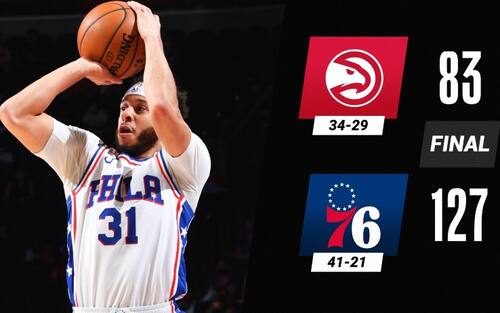 PHILADELPHIA 76ERS-ATLANTA HAWKS 127-83 | Bastano 12 minuti ai Sixers per volare sul 37-17 in avvio di gara e conquistare la certezza aritmetica di partecipare per il quarto anno in fila ai playoff, in un match mai in discussione e dominato da Philadelphia grazie ai 20 punti di Seth Curry e ai 17 con 7 rimbalzi a testa di Joel Embiid e Tobias Harris - rimasti sul parquet giusto il minimo indispensabile per chiudere i conti. I titolari infatti non giocano il quarto periodo, con Ben Simmons schierato soltanto 15 minuti causa falli (8 punti e 6 assist)