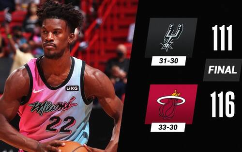 MIAMI HEAT-SAN ANTONIO SPURS 116-111 | Vittoria n°600 in carriera da capo allenatore per Erik Spoelstra (27° all-time nella storia NBA a raggiungere un simile traguardo), che si gode i 29 punti di Jimmy Butler e i 21 e 11 rimbalzi di Bam Adebayo - decisivi nel il 17-0 di parziale che nel secondo tempo ha permesso a Miami di avere la meglio contro un avversario complicata come gli Spurs. Gli Heat restano così aggrappati al 6° posto al Est al pari dei Celtics (33-30 il record), con un tris di giocatori a quota 18 punti: Kendrick Nunn, Goran Dragic e Dewayne Dedmon