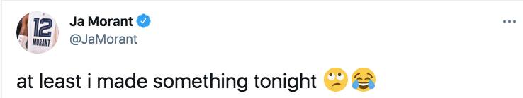 La sua prestazione non dev’essergli piaciuta (solo 3/12 al tiro, 8 punti seppur conditi da 6 assist, 5 rimbalzi e 3 recuperi) ma la schiacciata sul finire del primo tempo sull’alley oop alzatogli da Dillon Brooks rischia di finire tra quelle più belle dell’anno. Lo sa anche Ja Morant, che infatti su Twitter ha commentato (di risposta all’account ufficiale dei Grizzlies, che celebrava l’ennesimo volo della Morant Airlines): “Almeno ho fatto qualcosa anch’io”