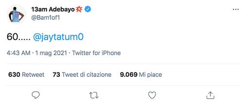 JAYLEN BROWN, BOSTON CELTICS | Uno dei primi tweet arriva dal suo compagno di squadra, privilegiato testimone di una prestazione storica: “Irreale”, il suo commento