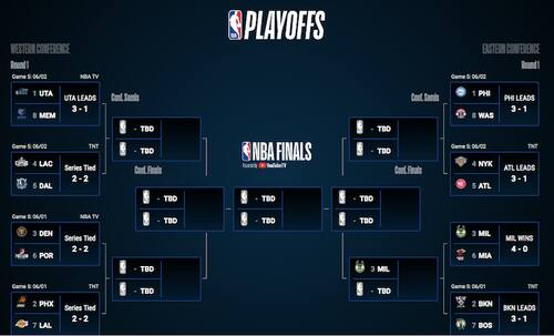 Questa la situazione playoff dopo che tutte le squadre hanno giocato le prime 4 partite delle rispettive serie: soltanto Milwaukee è già qualificata alle semifinali di Conference, tutte le altre squadre devono ancora lottare per conquistare un posto tra le prime otto della lega