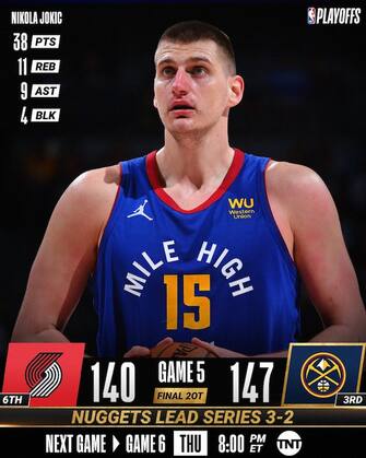 DENVER NUGGETS-PORTLAND TRAIL BLAZERS GARA-5 147-140 2OT | La partita più memorabile di questo primo turno di playoff, senza alcun dubbio. La serie più equilibrata tocca il suo punto massimo con una gara-5 risolta solamente dopo due supplementari, con i Nuggets che riescono finalmente a piegare la resistenza di Portland dopo una battaglia lunga 58 minuti. Oddio, definirla come "di Portland" è leggermente improprio: la resistenza è stata tutta di Damian Lillard