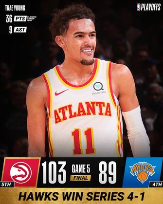 Il giovane talento degli Hawks chiude con 36 punti, 9 assist e una prestazione al tiro da 10/28 complessivo dal campo. Young diventa così assieme a Michael Jordan, l’unico giocatore nella storia NBA ad aver realizzato da avversario tre trentelli in fila al Madison Square Garden; abile ad approfittare anche della doppia doppia da 14 punti e 15 rimbalzi di Clint Capela (6/7 al tiro) e dei 15 punti di un chirurgico De’Andre Hunter che colpisce nei momenti cruciali della sfida. Atlanta conquista così la prima semifinale di Conference degli ultimi 5 anni