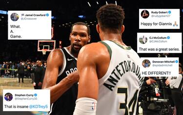 Anche il resto dei protagonisti della NBA è rimasto incollato davanti alla televisione per gara-7 tra Brooklyn Nets e Milwaukee Bucks, vinta dai secondi dopo un tempo supplementare. Tra i tweet esaltati dal canestro impossibile di Kevin Durant e i complimenti ai Bucks vincitori, ecco come la lega ha vissuto “la partita dell’anno”