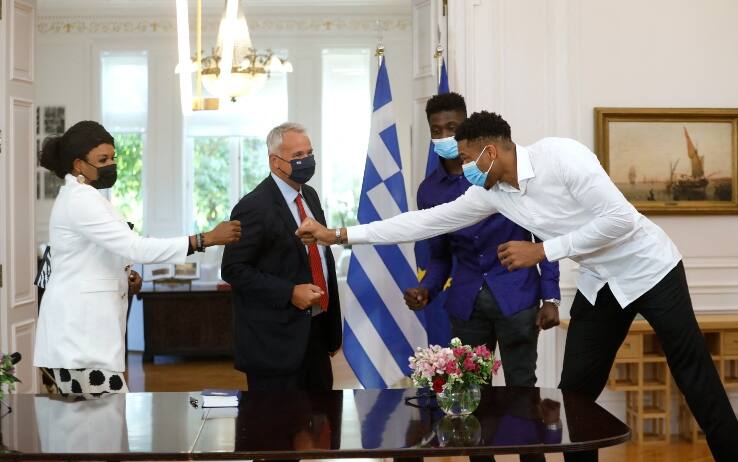 la cerimoniaVeronica e Alex Antetokounmpo, alla presenza del primo ministro greco Kyriakos Mitsotakis, hanno ricevuto la cittadinanza greca nel corso di una cerimonia ufficiale che ben racconta quanta strada Giannis e i suoi cari siano riusciti a percorrere da quando tre decenni fa arrivarono come immigrati dalla Nigeria
