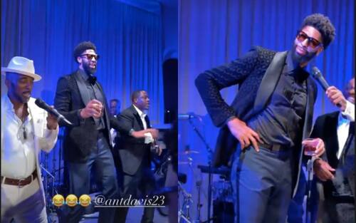 A un certo punto, con l'andare avanti della serata, Davis si è concesso anche un ballo sul palco davanti a tutti (con tanto di bicchiere in mano, di cui lo staff tecnico dei Lakers preferisce non conoscere il contenuto)
