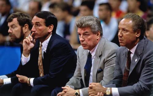 ALLENATORE, CHUCK DALY, NEW JERSEY NETS | Da fine maggio Daly è diventato il nuovo allenatore dei Nets (quelli di Drazen Petrovic, col duo Kenny Anderson-Derrick Coleman) ma le nove stagioni precedenti lo hanno visto sulla panchina dei Detroit Pistons. C’è lui dietro la costruzione dei “Bad Boys”, c’è lui dietro le famose “Jordan Rules” per fermare MJ. Due titoli NBA al timone di quei Pistons, nel 1989 e poi ancora nel 1990, gli valgono la panchina del Dream Team: al suo fianco un altro coach NBA, Lenny Wilkens dei Cleveland Cavaliers, e due allenatori collegiali: P.J. Carlesimo (Seton Hall) e Mike Krzyzewski (Duke University)