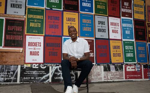 ISIAH THOMAS | E infatti il grandissimo giocatore dei Pistons viene fermato dagli altri abitanti di NBA Lane per una foto ricordo. Con quel sorriso contagioso che ha contraddistinto un'epoca