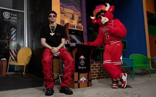 LAMELO BALL | Presente (e futuro: LaMelo Ball) e passato (il videogioco da sala NBA Jam). A far compagnia alla giovane stella degli Hornets c'è anche Benny The Bull (ma di lui parleremo più avanti...)