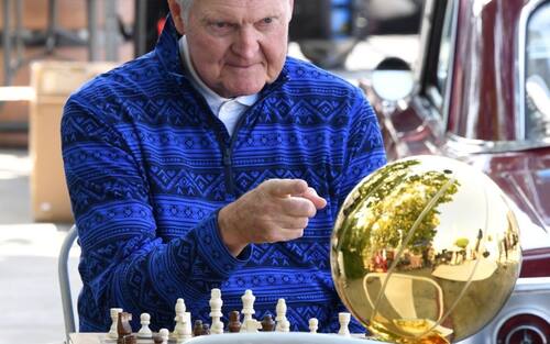 JERRY WEST | Se "Mr. Clutch" ha un solo titolo NBA da sfoggiare (contro i 7 di Horry), non fatevi ingannare dai numeri: ha disputato 9 finali NBA e il suo ruolo nella storia della lega è talmente imporante che si dice sia sua la silhoutte del logo NBA. Per le strade di NBA Lane oggi si diverte a giocare a scacchi: contro il Larry O'Brien Trophy (vinto nel 1972)...
