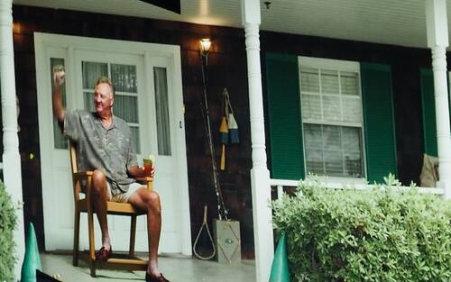 LARRY BIRD | ...dal numero 6 di Russell al 33 di Bird, ovviamente entrambi ritirati dai Celtics. Un altro abitante eccellente di NBA Lane: sorseggia un drink e saluta i passanti
