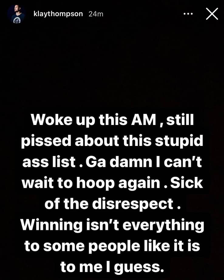 Lo ha ammesso lui stesso, con il solito candore senza filtri: "Mi sono svegliato e ancora non mi era passata, sono ancora infuriato per quella stupida lista del cavolo". La "stupida lista", ovviamente, è quella dei 75 (+1) nomi annunciati dalla NBA per celebrare i migliori giocatori dei primi 75 anni della propria storia. E Klay Thompson in quella lista non c'è - e non l'ha presa bene. A un primo messaggio affidato a Instagram nella giornata di ieri, appena saputa la notizia ("Sarò ingenuo, ma dentro di me sono convinto di essere uno dei Top 75 di sempre") il super tiratore degli Warriors ha fatto ora seguire un secondo messaggio ancora più amareggiato: "Dannazione, non vedo l'ora di tornare in campo a giocare. Sono stanco di questa mancanza di rispetto nei miei confronti. Mi pare di capire che vincere per alcuni non sia l'unico obiettivo di questo gioco, mentre per me è così", ha scritto Thompson, alludendo (neppure troppo velatamente) ai tre anelli di campione NBA che può sfoggiare, argenteria molto più ricca di quella di altri giocatori inclusi invece nella lista. E a dargli man forte è arrivato il suo compagno a Golden State Draymond Green, che commentando lo sfogo di Thompson ha scritto: "Klay è uno dei migliori 50".