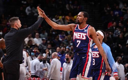 Alla sirena finale sono 34 punti per Kevin Durant, con 13/24 al tiro, 11 rimbalzi, 8 assist, un paio di triple e +12 di plus/minus nei 39 minuti in cui ha davvero dato fondo a tutte le sue energie sul parquet. A dargli una mano con 17 punti a testa (per entrambi è il massimo stagionale) ci hanno pensato poi Nic Claxton e Blake Griffin, con l’ex Clippers che aggiunge anche 9 rimbalzi, in una rotazione prima di 7 giocatori causa COVID