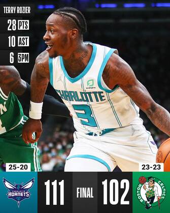 Quattro tiri e cinque punti totali per Gordon Hayward, dall’impatto limitato in quintetto a differenza di uno straripante LaMelo Ball - in tripla doppia e autore di 15 punti, 10 rimbalzi e 10 assist, molti dei quali utili ad armare la mano di un Terry Rozier da 28 punti con 10 assist e 6/11 dall’arco e quella di Miles Bridges da 22 con 7 rimbalzi. Charlotte sale così al 7° posto a Est, a una partita e mezza di distanza dai Cavaliers e dalla zona che garantisce l’accesso diretto ai playoff
