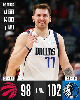 DALLAS MAVERICKS-TORONTO RAPTORS 102-98 | Continua la risalita playoff dei Mavericks - una delle squadre più in forma delle ultime settimane che battono anche i Raptors e si prendono la quarta vittoria in fila e la decima delle ultime 11 sfide. Partita così dall’11° posto a Ovest, Dallas ora si ritrova a ridosso dei Jazz e della quarta posizione. Non bastano invece a Toronto - che riduce la rotazione a soli sette uomini - i 20 punti e 8 rimbalzi di un Pascal Siakam che guida un quintetto tutto in doppia cifra (19 punti e 8 rimbalzi per OG Anunoby)