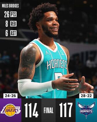 CHARLOTTE HORNETS-LOS ANGELES LAKERS 117-114 | Senza LeBron James e Anthony Davis fuori per infortunio, i Lakers vanno vicini a una clamorosa rimonta da -20, mettendo nelle mani di un caldissimo Russell Westbrook il pallone della vittoria. La sua tripla a pochi secondi dalla sirena prende solamente il ferro, permettendo agli Hornets si evitare una rimonta che sarebbe stata pesantissima. Per i padroni di casa sono decisivi i 26 punti di Miles Bridges e i 22 dalla panchina di Ish Smith (10/12 al tiro), oltre ai 20 a testa di LaMelo Ball e Terry Rozier