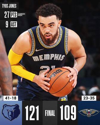 NEW ORLEANS PELICANS-MEMPHIS GRIZZLIES 109-121 | Anche senza Ja Morant, fuori per un problema alla caviglia, Memphis passa a New Orleans. I Grizzlies dominano a rimbalzo 49-34 (ne cattura 13 Steven Adams) e sfruttano il pessimo 4/26 dall’arco di New Orleans (15.4%). In attacco ispiratissimo Tyus Jones, che mette a referto il suo massimo in carriera di 27 punti (11/17 al tiro), con 9 assist. Jaren Jackson chiude a quota 23. Sesto successo in fila per Memphis