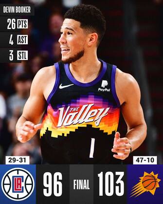 PHOENIX SUNS-L.A. CLIPPERS 103-96 | Sesto successo consecutivo per i Suns, che vanno vicini a finire nella ragnatela dei Clippers (rientrati a contatto dopo essere stati sotto in doppia cifra a fine terzo quarto) ma resistono nel finale grazie alle giocate delle loro stelle. Phoenix si conferma imbattibile nei finali di gara, salendo a un record incredibile di 36 vittorie e zero sconfitte quando cominciano il quarto periodo in vantaggio. Ai losangeleni, vincenti su Golden State la sera prima, non servono i 23 punti di Marcus Morris e i 18 di Nicolas Batum