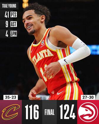 A ispirare entrambi i canestri decisivi è stato un fenomenale Trae Young, imprendibile per la difesa dei Cavs: 41 punti, 9 assist, 13/22 al tiro e 11/13 ai liberi per il leader di Atlanta, chiamato a trascinare la squadra a un record migliore rispetto all’attuale decimo posto nella Eastern Conference. Gli Hawks si rialzano così dopo un periodo in cui avevano perso cinque delle precedenti sette partite