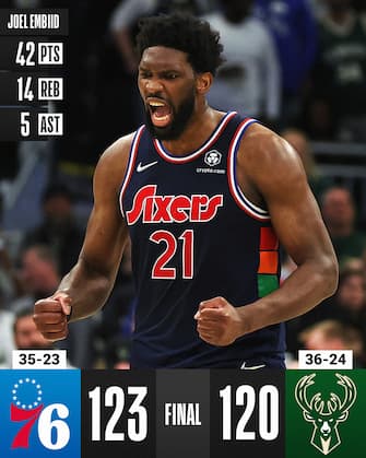 MILWAUKEE BUCKS-PHILADELPHIA 76ERS 120-123 | In attesa dell’esordio di James Harden in maglia Sixers, Philadelphia si gode una meritata vittoria in volata in trasferta contro Milwaukee - riprendendo per i capelli un match in cui gli ospiti sciupano 15 lunghezze di vantaggio e si aggrappano nel finale a Joel Embiid; sempre più MVP di una regular season in cui sta dominando sia in attacco che in difesa (con tanto di canestri decisivi negli ultimi 3 minuti di gioco). Philadelphia sale così al 3° posto a Est - di un’unghia davanti ai campioni NBA in carica