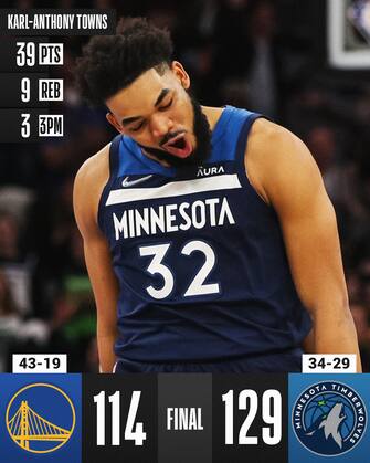 Nonostante la prima assenza in carriera nel giro di due anni di Anthony Edwards a causa di un infortunio, Minnesota si aggrappa al suo All-Star: Karl-Anthony Towns, approfittando dell’assenza di Draymond Green sotto canestro, chiude con 39 punti, 14/22 al tiro e nove rimbalzi, mentre sono 22 i punti a referto per D’Angelo Russell e 20 quelli in uscita dalla panchina per Malik Beasley con 6/9 dall’arco