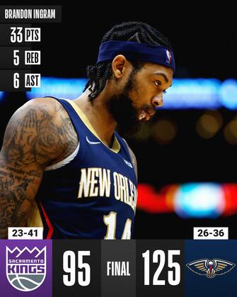 La terza vittoria consecutiva dei Pelicans, che ora spaventano i Lakers per il nono posto a Ovest (solo una gara e mezzo di distanza) è firmata ancora una volta proprio da un ex gialloviola, Brandon Ingram. Chiude con 33 punti una prestazione eccellente che lo vede sbagliare solo 4 tiri in tutta la partita (15/19), ma tutta New Orleans ha ottime percentuali (oltre il 59% dal campo) mandando tutto il quintetto base in doppia cifra più anche Naji Marshall dalla panchina, autore di 17 punti proprio come Valanciunas e McCollum
