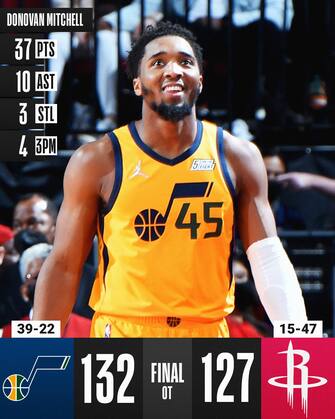La copertina in casa Jazz se la prende (come al solito, e con merito) Donovan Mitchell, autore di 37 punti in 40 minuti con 13/27 al tiro cui aggiunge anche 10 assist, ma è come spesso accade mostruoso anche il contributo di Rudy Gobert, che chiude in doppia doppia (la 37^ della stagione) con 27 punti e 17 rimbalzi di cui 6 offensivi. A decidere però la gara nell'overtime è Mike Conley, che manda a bersaglio nei 5 minuti supplementari 9 dei suoi 15 punti cui aggiunge anche 8 rimbalzi e 4 recuperi