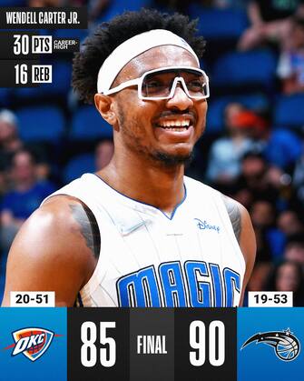 In una gara dal punteggio così bloccato, a fare la differenza sono stati 10 dei 30 punti di Wendell Carter Jr. realizzati nel solo ultimo quarto, a cui ha aggiunto anche 16 rimbalzi per la sua miglior prestazione in carriera dal punto di vista realizzativo. Il vantaggio definitivo è arrivato grazie a un canestro di Franz Wagner (secondo miglior realizzatore con 11 punti) a 2:24 dalla fine, dopo quale i Magic non si sono più voltati indietro