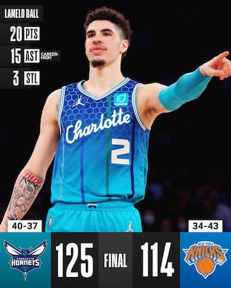 Alla sirena finale sono 31 punti per Miles Bridges, che chiude con 11/15 al tiro e 4/4 dall’arco - ispirato da un LaMelo Ball scatenato al Madison Square Garden e autore di 20 punti con 15 assist e un vertiginoso +20 di plus/minus. È lui spesso e volentieri ad armare la mano di Terry Rozier (15 punti) e di Kelly Oubre Jr. in uscita dalla panchina - 21 punti con 8/11 al tiro e 4/7 dalla lunga distanza in 24 minuti di gioco. Per gli ospiti questa è l'ottava vittoria nelle ultime 11 gare