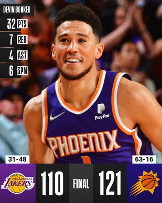 Dopo due sconfitte in fila i Suns evitano di subire la terza (non è mai accaduto in questa stagione) giocando una gara concreta, guidati dai 32 punti di Devin Booker (16 nel solo terzo quarto, chiudendo con 6/9 da tre alla fine) e dai 22+13 di Deandre Ayton, in una serata in cui Chris Paul ha passato il pallone (12 assist) più che pensare a segnare (6 punti in 24 minuti). Dopo essere andati avanti in doppia cifra, i Suns hanno controllato il match, complice anche l’arrendevolezza dei Lakers