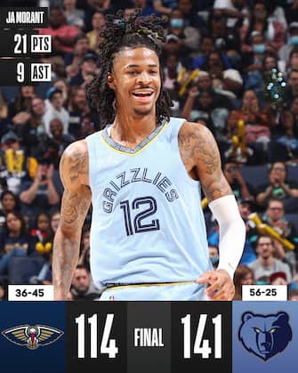 MEMPHIS GRIZZLIES-NEW ORLEANS PELICANS 141-114 | Torna in campo Ja Morant che dopo aver saltato le ultime nove partite causa infortunio, resta in campo 27 minuti e chiude con 21 punti e nove assist - dimostrando come il ginocchio destro sia a posto in un match dominato dall’inizio alla fine dai Grizzlies (con un terzo quarto da 55-33, massimo di franchigia messo a referto in una singola frazione). Alla sirena finale ci sono anche 23 punti di Dillon Brooks e 20 con un perfetto 10/10 al tiro di Brandon Clarke