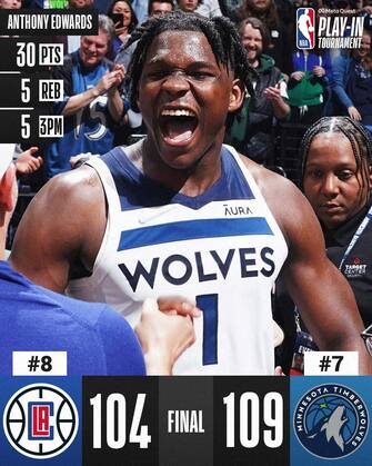 Con Towns fuori dai giochi, a portare i T’Wolves ai secondi playoff negli ultimi 18 anni sono state le altre due stelle della squadra, Anthony Edwards e D’Angelo Russell. Il primo è stato semplicemente immarcabile per la difesa dei Clippers nel finale di gara, segnando 10 dei suoi 30 punti nel solo ultimo quarto con la tripla in step back del +4 a meno di 3 minuti dalla fine, a cui ha fatto seguito un minuto dopo Russell con il jumper del +6 per chiudere con 29 punti, 5 rimbalzi e 6 assist. In doppia cifra anche Malik Beasley con 12 punti dalla panchina
