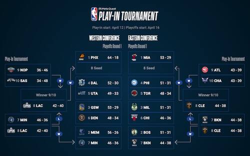 Il tabellone playoff e play-in è ora quasi completo: Brooklyn affronterà Boston e Minnesota incrocerà Memphis al primo turno di playoff, mentre Cleveland attende la vincente di Atlanta-Charlotte e i Clippers quella tra New Orleans e San Antonio per definire anche le ottave posizioni nelle due conference. Tutte le partite sono in onda sui canali di Sky Sport