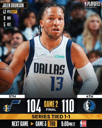 A "fare il Doncic” ci pensa Jalen Brunson, che firma il suo massimo in carriera in post-season da 41 punti con 8 rimbalzi e 5 assist, tirando 15/25 dal campo di cui 6/10 dalla lunga distanza. Ancora meglio di lui, almeno da tre punti, fa Maxi Kleber: dopo aver anticipato al suo compagno di squadra Dorian Finney-Smith che avrebbe "lasciato andare almeno 10 triple”, il tedesco ha fatto ancora meglio mettendone 8 delle 11 tentate per 25 punti finali, dando una grossa mano ai Mavs per riportarsi in parità nella serie
