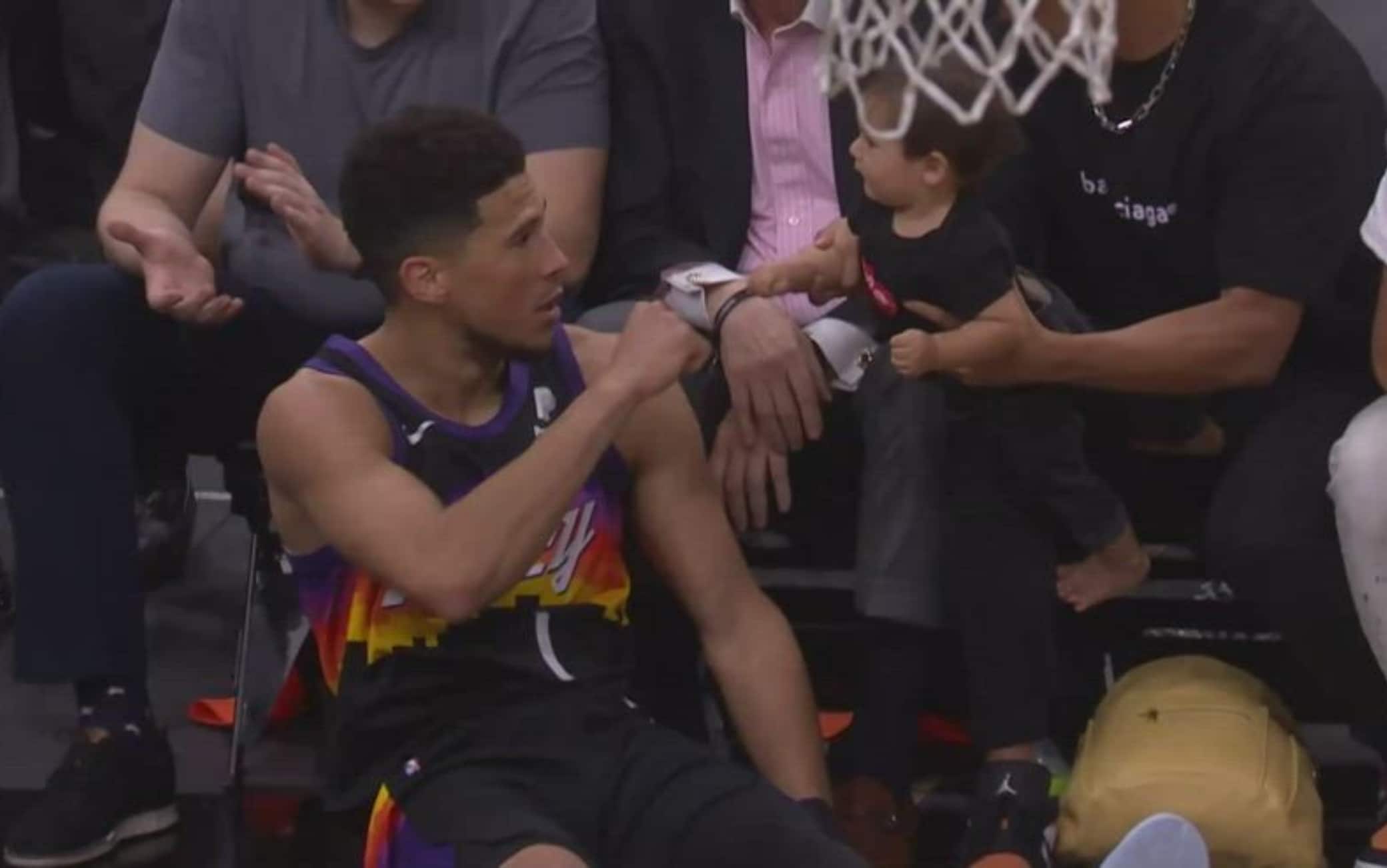 l'immagineL'All-Star dei Suns ha giocato un super primo tempo da 31 punti, con una frazione iniziale da 19 conclusa con un canestro pazzesco sulla sirena che lo ha portato a planare a terra ai piedi del pubblico in prima fila. Un bersaglio che ha fatto impazzire di gioia i tifosi di Phoenix e "festeggiando" da Booker dando il pugnetto a un bimbo di pochi mesi presente a bordocampo