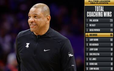 Con la vittoria in gara-3 contro Toronto decisa anche da un suo schema per liberare Joel Embiid, Doc Rivers ha vinto la 101esima partita della sua carriera ai playoff, salendo al quarto posto solitario nella classifica all-time. Insieme a lui è nella top-10 anche un altro allenatore ancora in corsa ai playoff, anche se la top-3 è decisamente lontana: ecco chi è tra le prime dieci posizioni
