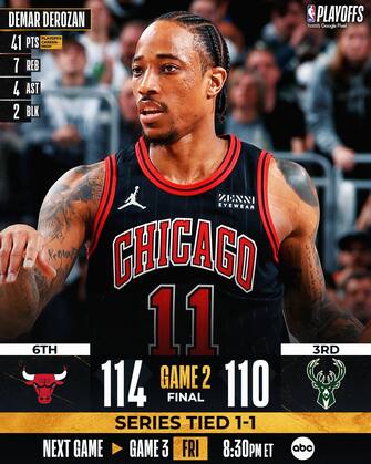 La stella dei Bulls ha firmato il suo massimo in carriera ai playoff chiudendo una prestazione magistrale da 41 punti, mantenendo fede alla sua promessa dopo gara-1 che non avrebbe più tirato così male. Il suo 16/31 dal campo e 9/9 ai liberi è stato decisivo per il successo di Chicago, che ha avuto anche 24 punti e 10 rimbalzi da Vucevic e 20 da Zach LaVine, oltre all’onnipresente difesa di Alex Caruso (9 punti e 10 assist) e il contributo di Patrick Williams (10+9). La serie si sposta ora a Chicago sull’1-1, ma le brutte notizie per i Bucks non finiscono qui