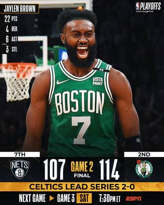 BOSTON CELTICS-BROOKLYN NETS GARA-2 114-107 (SERIE 2-0) | Anche senza l’epilogo drammatico di gara-1 col buzzer beater di Jayson Tatum, la serie tra Celtics e Nets continua a non deludere in termini di emozioni. Gara-2 va di nuovo ai padroni di casa, capaci di rimontare 17 lunghezze di svantaggio con un grande secondo tempo da 59-42 specialmente nella metà campo difensiva, mettendo la testa avanti nel quarto periodo senza più voltarsi indietro per portarsi sul 2-0 nella serie e mettere i Nets spalle al muro