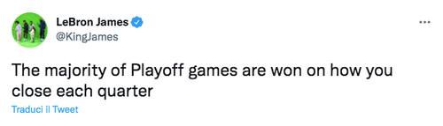 LO SPUNTO DI RIFLESSIONE | In una gara segnata dai parziali come quella tra Grizzlies e T'Wolves, James fa notare come in realtà la conclusione di ogni singolo quarto sia decisiva per l'inerzia complessiva della sfida: puoi anche andare sul +20, ma se termini bene il quarto le cose possono rapidamente cambiare rotta