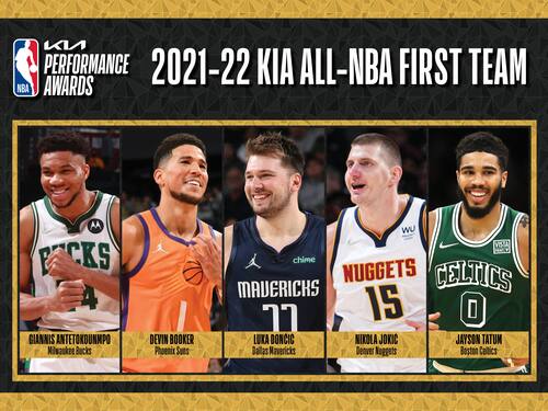 Questo il quintetto dei migliori giocatori della regular season NBA: come già sottolineato in precedenza, mai negli ultimi decenni era stato selezionato un All-NBA First Team così giovane, con il più anziano (Giannis Antetokounmpo) che si ferma a soli 27 anni
